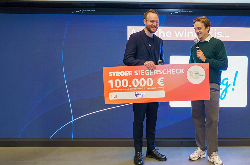 - Auf unserem Pitch Event am 16.09.2025 in Frankfurt (IHK Frankfurt am Main/Deutsche Börse AG) bestimmen das Publikum und die Jury gemeinsam den Gewinner und verleihen feierlich die Frankfurter Sprungfeder!